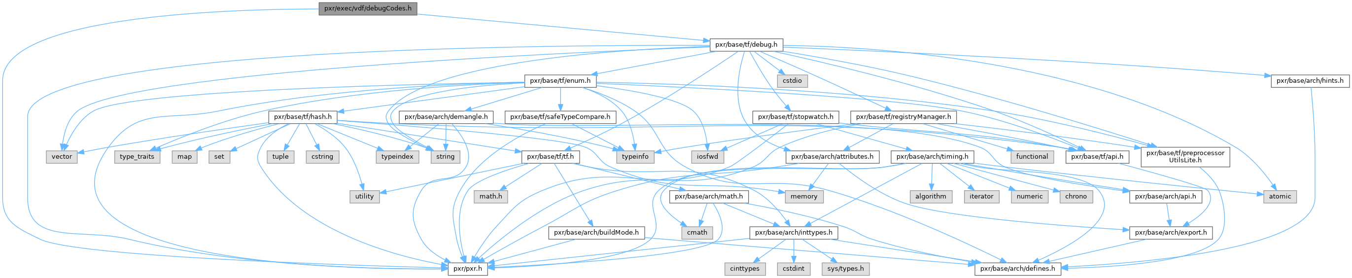 Include dependency graph for debugCodes.h: